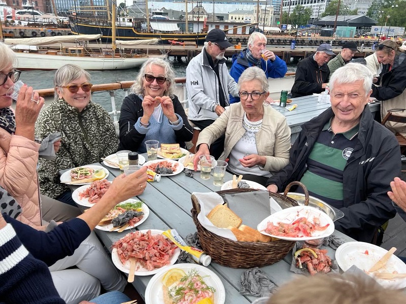 Vi fulgte spent med på Yr fordi det var spådd regn og sterke vindkast på fjorden. Likevel møtte 41 deltakere opp på Rådhuskaia. Mannskapet fortalte at turen dagen før hadde vært ruskete. Dermed måtte båten ligge ved kaia denne dagen. Det skulle likevel bli rekefest om bord. Noe av bespisningen foregikk ute på dekk, men da regnet kom trakk deltakeren inn i salongene. Dette ble en tett, hyggelig og spesiell rekefest, ifølge de tilbakemeldingene vi fikk.
